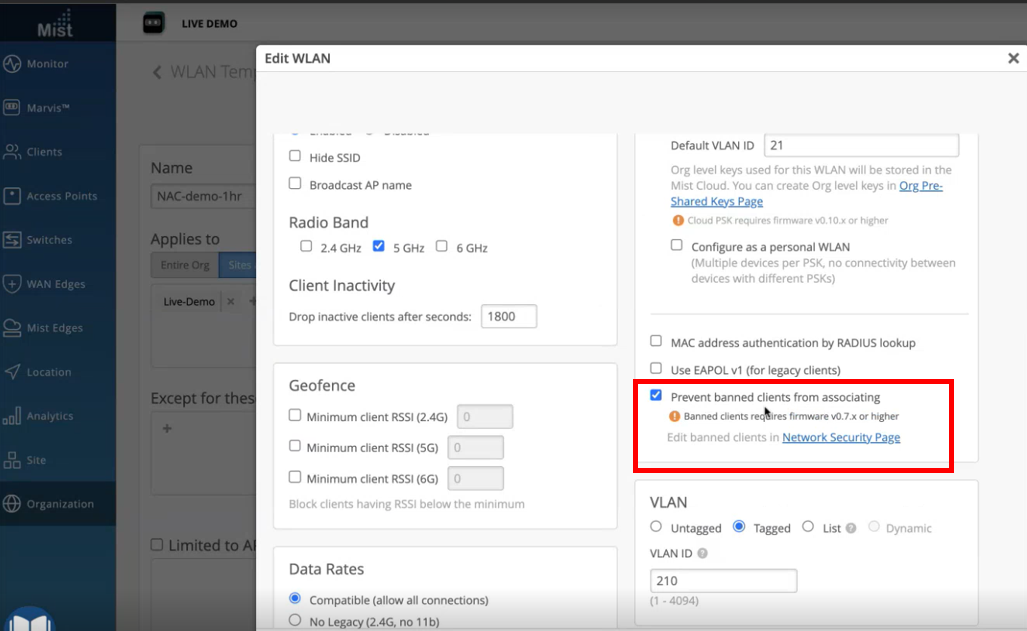 方法 1 : ブラックリスト形式(Wifi認証自体も不可にする)をご利用になる場合は、Mist Cloud上で下記の事前設定が必要になります。