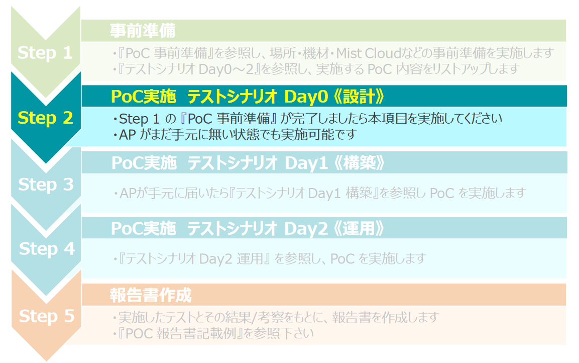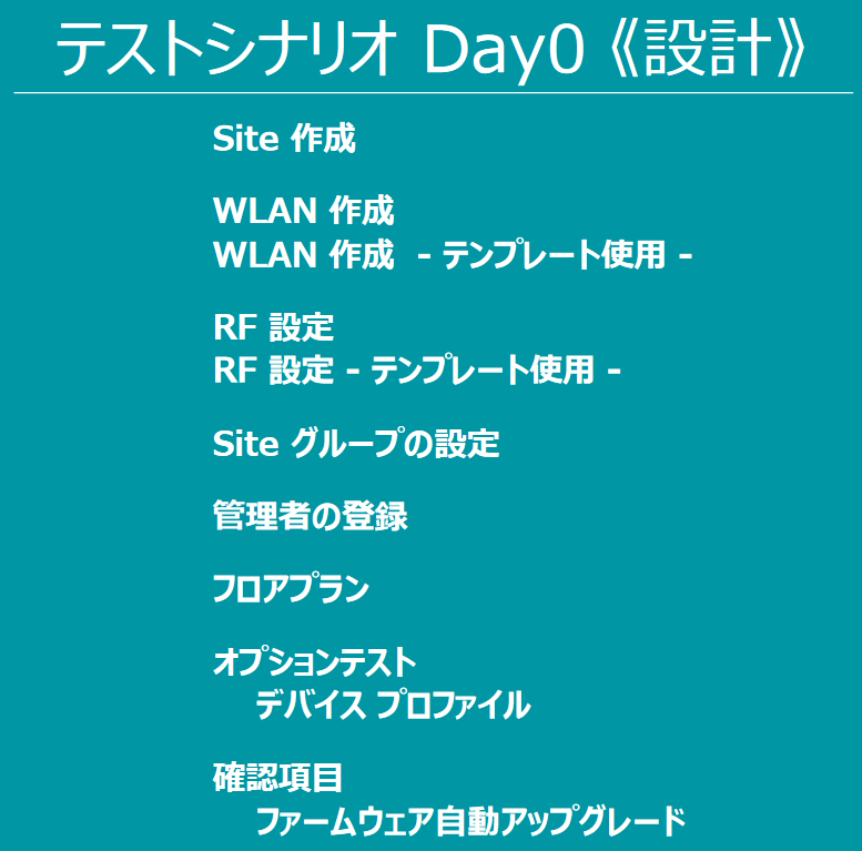 PoCガイド 事前準備に続き、設計(Day0)に関するテストシナリオです。
